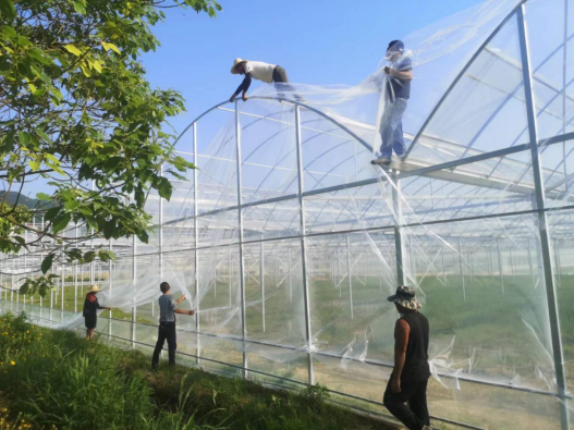 立夏以來(lái),安徽省安慶市宜秀區(qū)五橫鄉(xiāng)白林村20畝蔬菜大棚井然有序的建設(shè)中,白林村積極開(kāi)拓思路,創(chuàng)新農(nóng)業(yè)發(fā)展方向,在“大棚經(jīng)濟(jì)”上做文章,大力發(fā)展培育特色高效農(nóng)業(yè),助力鄉(xiāng)村產(chǎn)業(yè)振興。白林村黨總支部書(shū)記楊忠紅正在與駐村工作隊(duì)就蔬菜大棚地灌管道建設(shè)進(jìn)行謀劃。