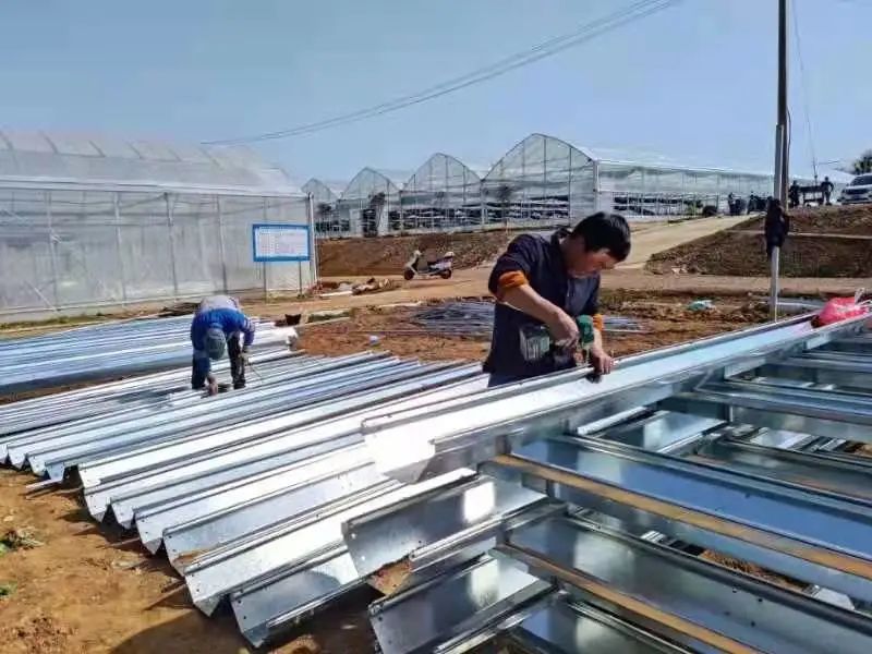 “今年的花菜長勢不錯,畝產能達到6000多斤,按照目前的收購價格,這季花菜能賣將近12萬余元。”基地負責人嚴云虎開心的說道,綠油油的花菜長勢喜人,整整齊齊地排列在田地里,農戶們采下一片葉子“輕柔”地蓋在剛露頭的花菜上,以確保花菜更加地“白嫩”。在蔬菜種植基地不遠處的施工現場,工人們正在緊張有序地焊接著大棚鋁合金主體框架,為擴建新棚做準備。“今年,我們將在原有的基礎上繼續擴大種植規模,實施羅嶺生態園項目三期工程建設,預計五月底完工。屆時,我們一、二、三期蔬菜大棚將會同時進入生產階段,呈現東邊采摘西邊種、南邊豐收北邊忙的繁忙景象。”