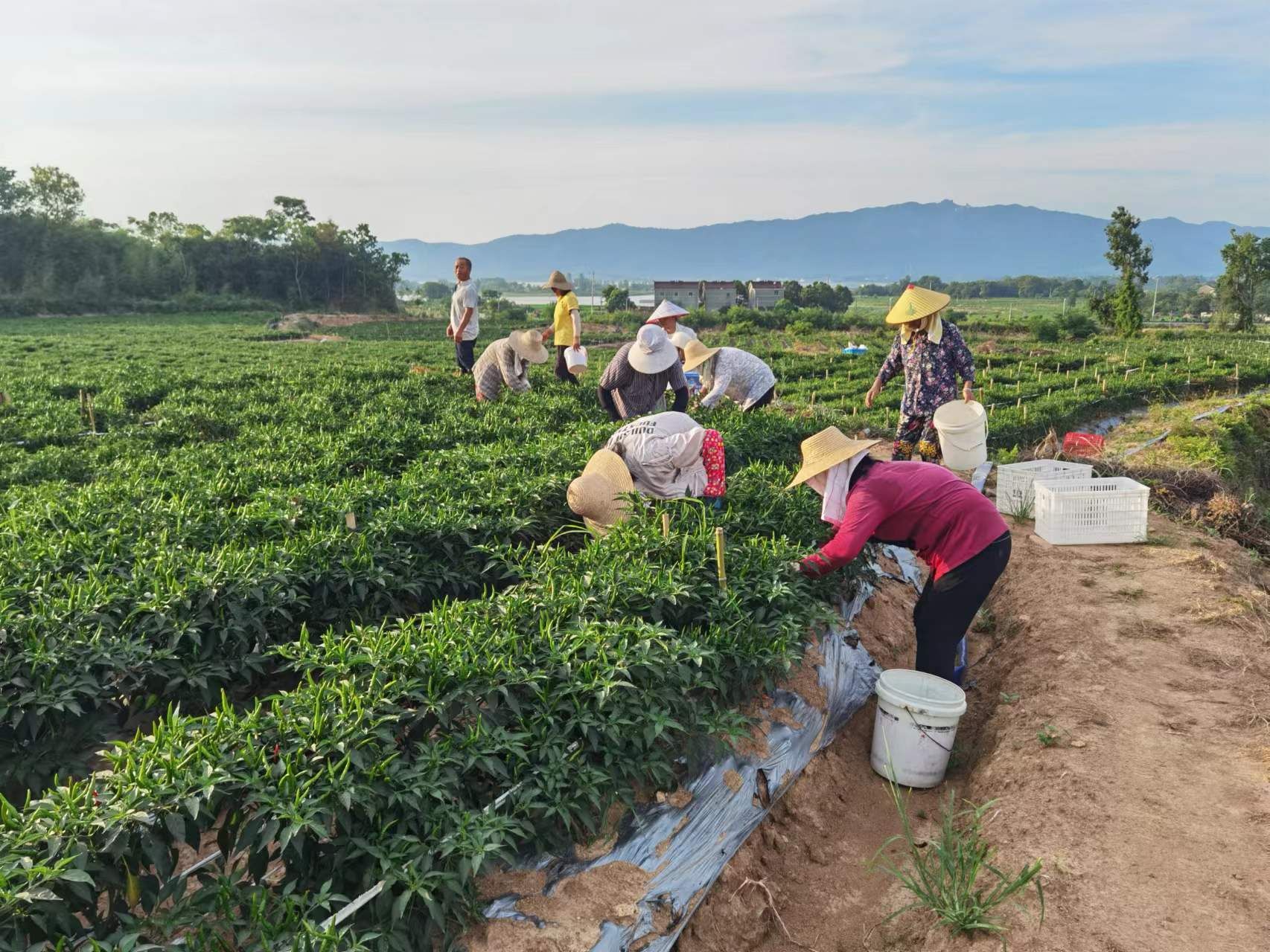 姥山社區(qū)辣椒產(chǎn)業(yè)園采摘一派豐收景象