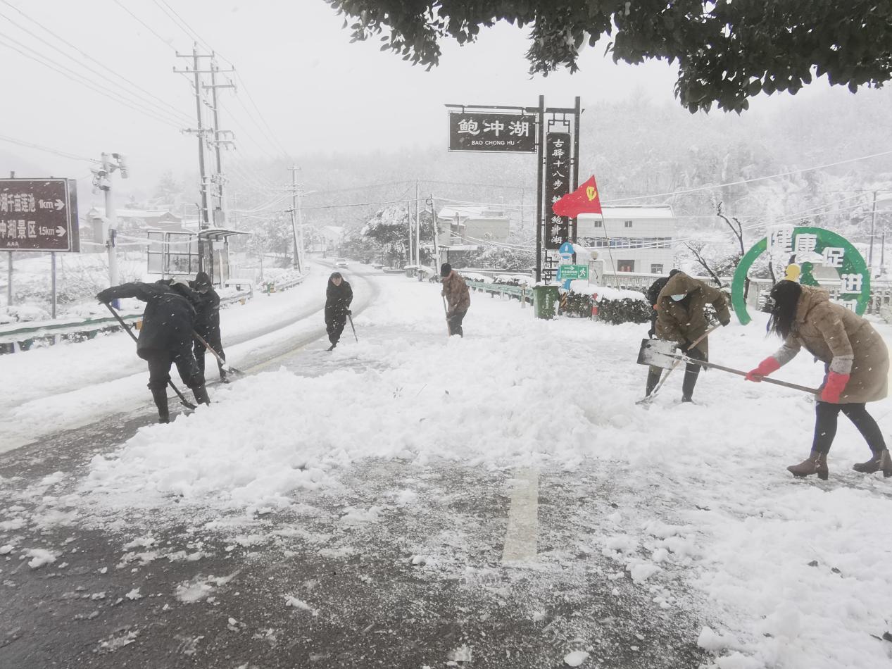 楊橋鎮鮑沖湖村:黨旗飄揚 破冰除雪保暢通