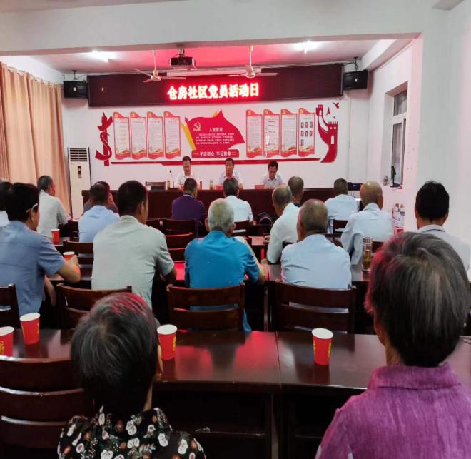 8月10日上午,區鄉村振興局黨組書記胡衛、副局長陳向陽,楊橋鎮司法所所長陳許繼一行到倉房社區結合文明創建開展主題黨日活動。