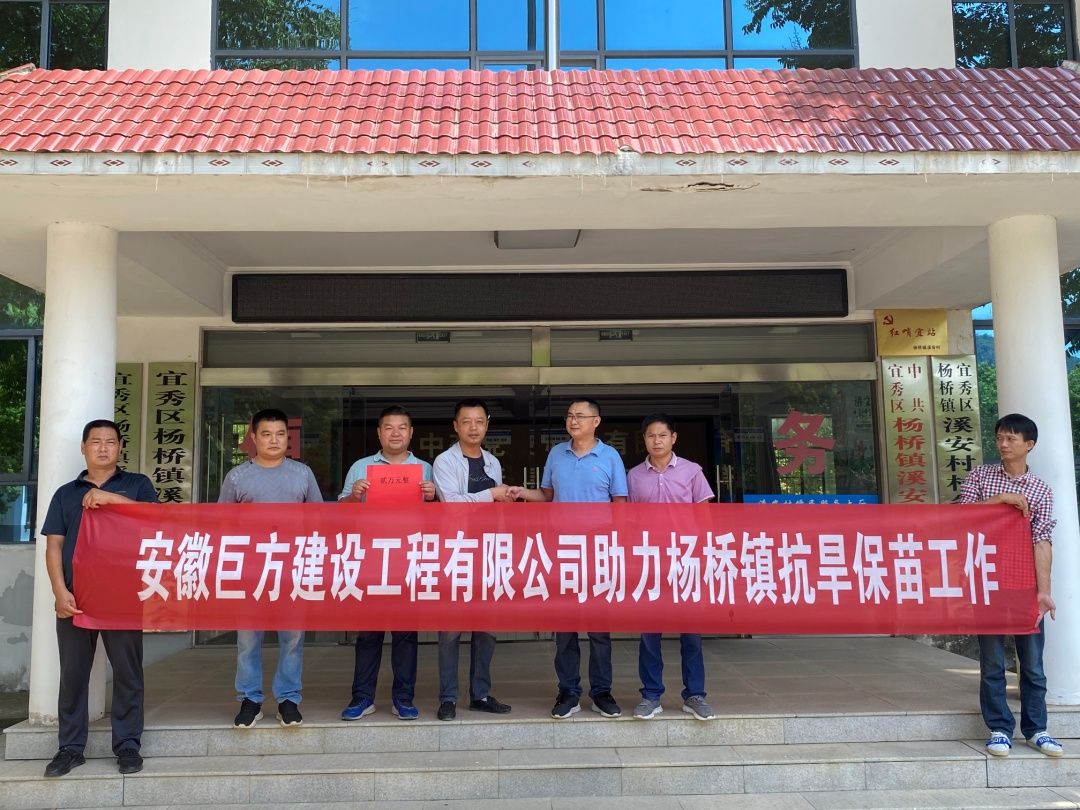 入夏以來,安慶市氣候較為異常,氣溫持續(xù)走高,降水嚴(yán)重偏少,旱情形勢(shì)嚴(yán)峻,為支援楊橋鎮(zhèn)抗旱減災(zāi)工作,8月19日上午,安徽巨方建設(shè)工程有限公司助力溪安村抗旱減災(zāi)工作,為溪安村捐贈(zèng)抗旱救災(zāi)款,全力支持抗旱自救,最大限度降低旱情造成的損失。