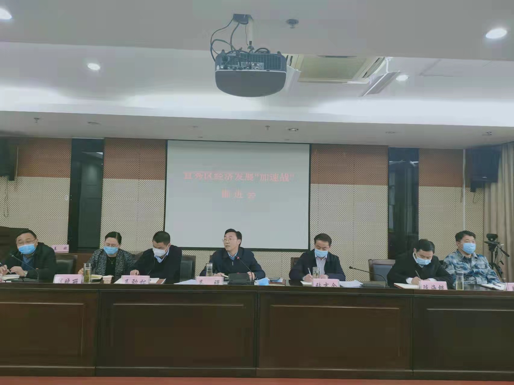 3月31日上午,區長吳曙主持召開全區經濟發展“加速戰”推進會。區領導張吉全、吳勁松、陳海銀、劉曉麗、胡昶、姜斌等出席會議,區直經濟主管部門,各鄉鎮(街道)主要負責同志參加會議。