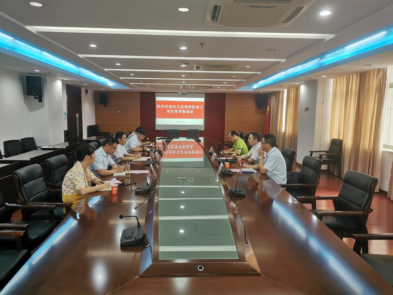 7月6日上午,區(qū)委常委、常務(wù)副區(qū)長陳海銀會見東方證券投資銀行公司總部董事、總經(jīng)理胡劉斌一行,洽談交流企業(yè)IPO上市輔導(dǎo),基金投融資項目合作事宜。區(qū)財政局、區(qū)招商中心、區(qū)委第二巡察組、綠色食品招商組負(fù)責(zé)同志參加。(撰稿:楊凱 審核:方建海)