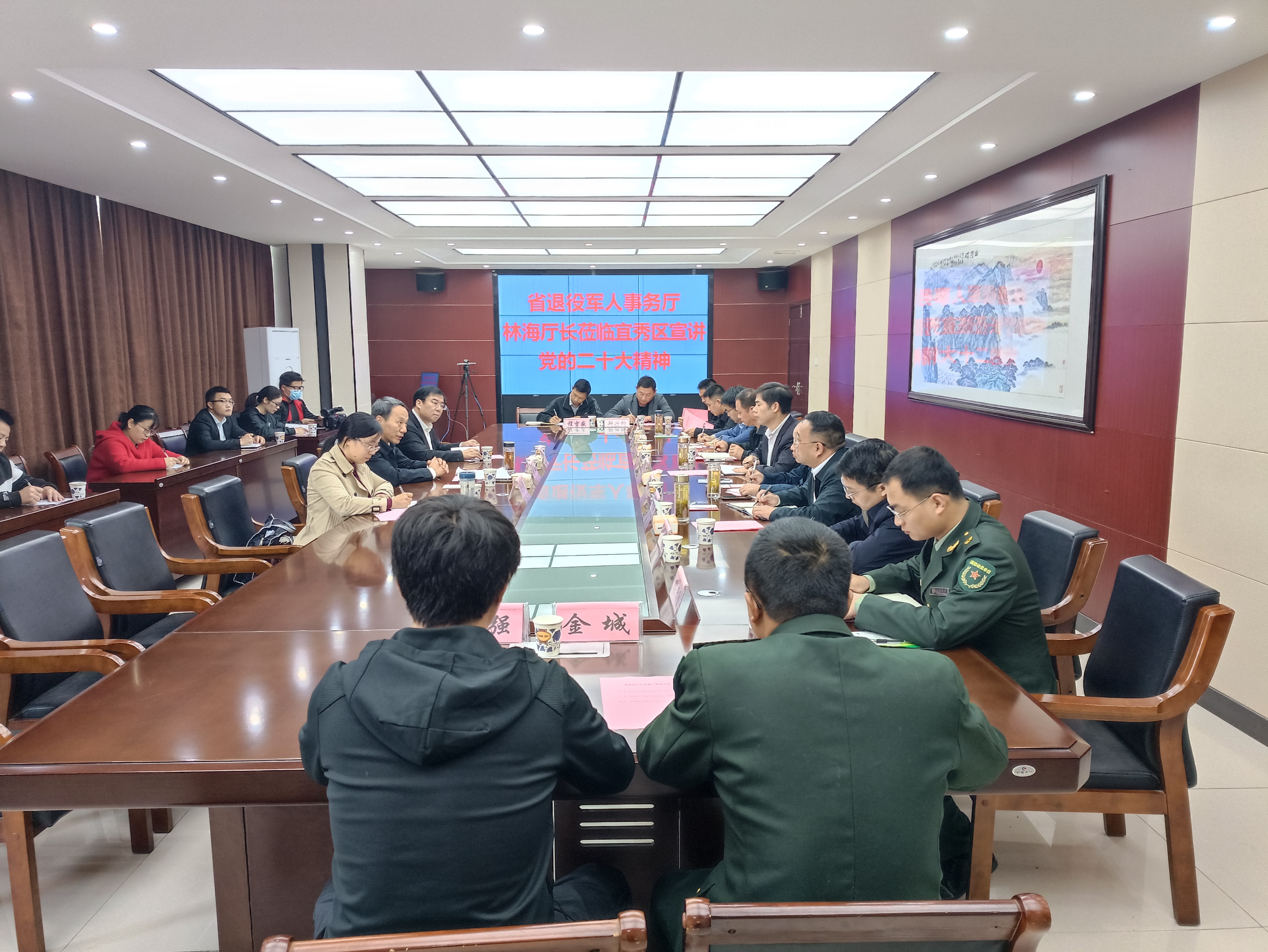 11月8日,省退役軍人事務(wù)廳黨組書(shū)記、廳長(zhǎng)林海率隊(duì)來(lái)宜秀調(diào)研退役軍人服務(wù)保障工作,宣講黨的二十大精神。區(qū)委書(shū)記鄭志,區(qū)委常委、大龍山鎮(zhèn)黨委書(shū)記胡昶陪同。