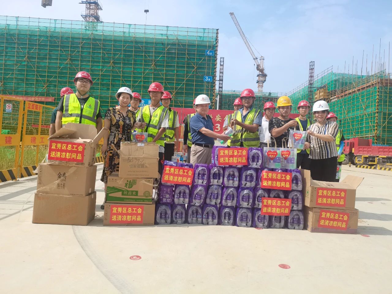 宜秀區(qū)委書記鄭志率隊來到江宸項目工地,向一線建筑工人代表們贈送清涼包、礦泉水。鄭志強(qiáng)調(diào)要把安全生產(chǎn)牢牢抓在手上,健全安全生產(chǎn)責(zé)任制,進(jìn)一步做好高溫天氣下安全生產(chǎn)和防暑降溫工作,確保勞動者身體健康和生命安全。