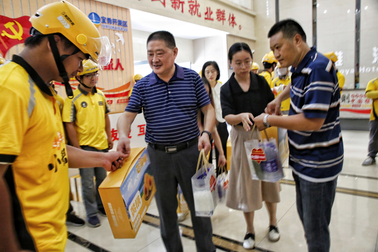 宜秀區(qū)人大副主任、區(qū)總工會主席趙永杰,市總工會權(quán)益部部長張?zhí)毂笠恍衼淼狡呓止A站,向快遞小哥等戶外勞動者們贈送了水果、清涼包、礦泉水。趙永杰感謝大家辛勤的勞動,叮囑大家要合理安排作息時間,勞逸結(jié)合,防止高溫中暑。