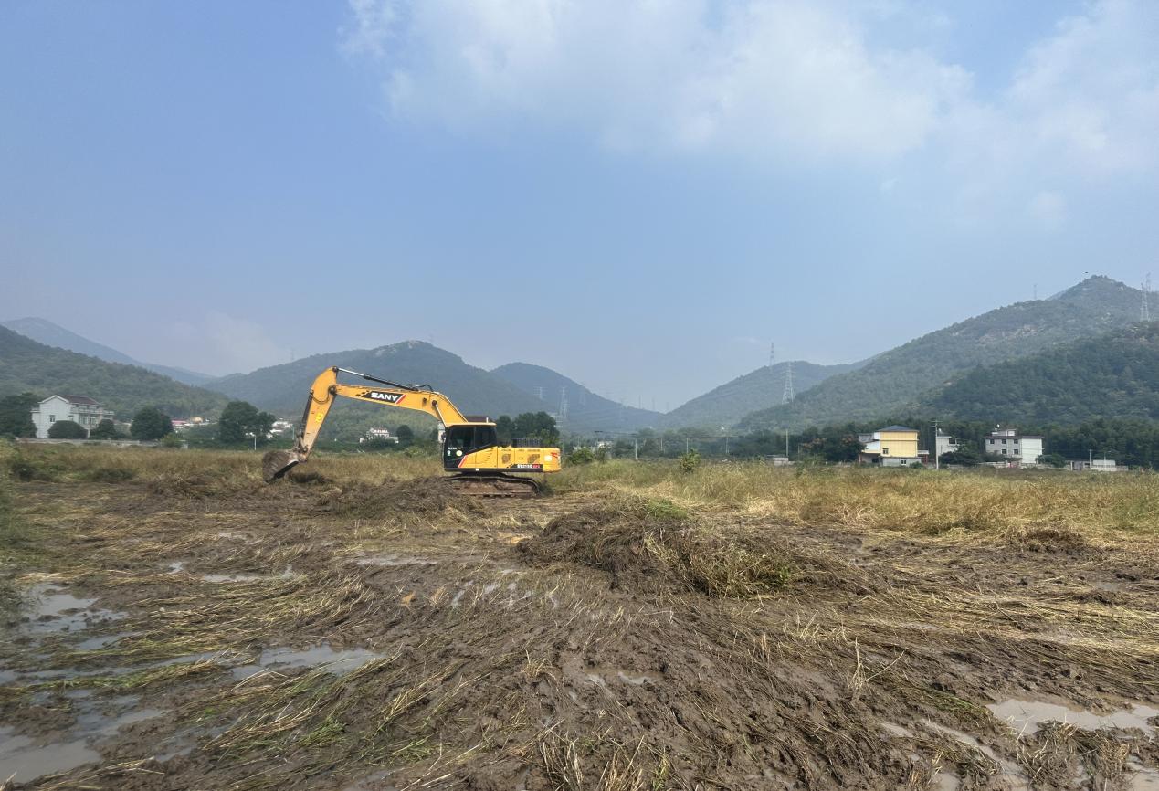 近日,在宣店社區(qū)農(nóng)田施工現(xiàn)場(chǎng),多臺(tái)挖掘機(jī)開(kāi)足馬力穿梭在田間,平整土地,呈現(xiàn)出一派繁忙景象。