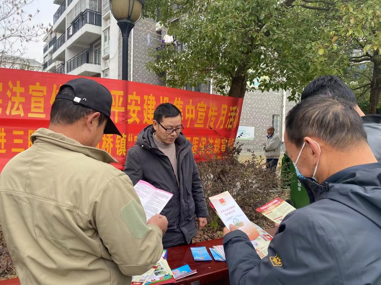 自第二批主題教育開展以來,為弘揚憲法精神,動員群眾關心、支持、參與社會治理工作,進一步提高群眾安全感、滿意度,在“12·4”國家憲法日和第六個“憲法宣傳周”到來之際,楊橋鎮司法所、綜治中心、婦聯、醫保辦聯合開展2023年憲法宣傳周暨平安建設集中宣傳月活動。