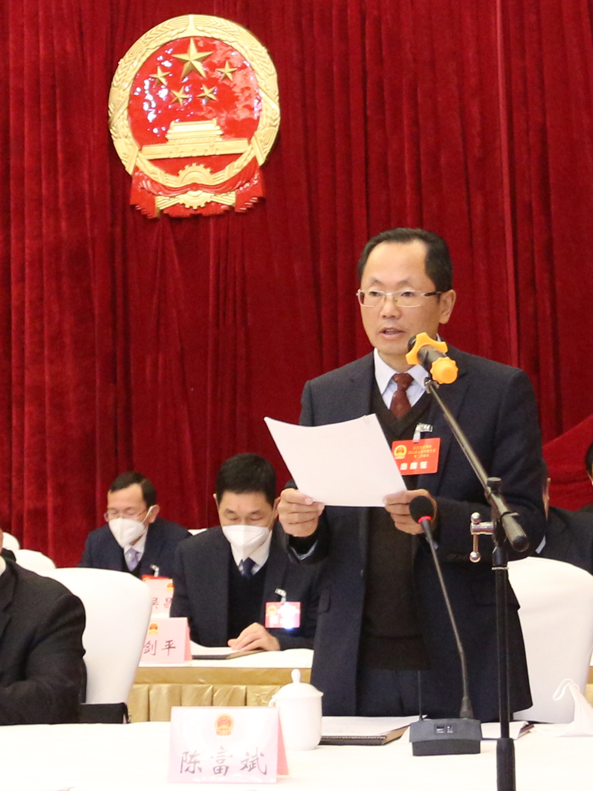 陳海銀、劉曉麗、胡昶、董劍平、倪百齡、王春、何平、張婷、潘長(zhǎng)周、張泓、徐晉斌在主席臺(tái)就座。區(qū)法院、區(qū)檢察院、北部新城建設(shè)管理局、大龍山林場(chǎng)等單位負(fù)責(zé)同志和大會(huì)主席團(tuán)其他成員也在主席臺(tái)就座。