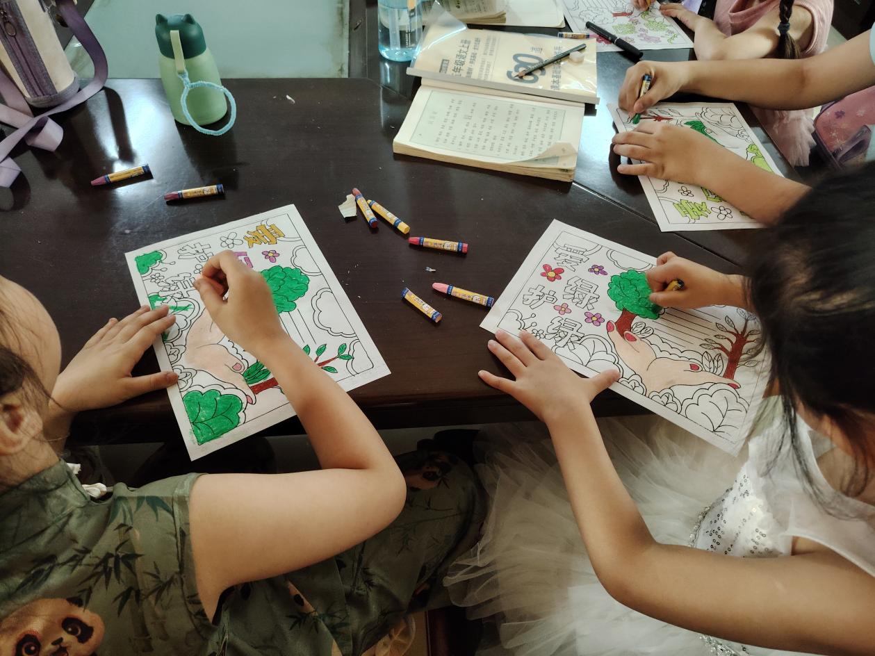 活動中,白澤湖鄉巾幗志愿者們準備了各種樣式的畫紙、水彩筆等繪畫工具,并通過PPT介紹了三原色、冷暖色、色彩明度等趣味色彩小知識。孩子們執起手中的畫筆,在雪白的畫紙描繪出屬于自己的色彩,一幅幅惟妙惟肖的作品在孩子們的手中誕生。繪畫完成后,在工作人員的引導下小朋友們紛紛把自己的作品展示給大家。