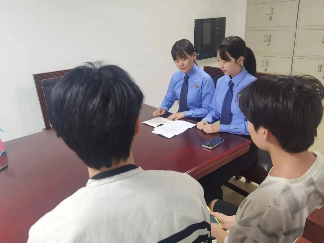 “這段時間學習/工作怎么樣?”“生活上有什么困難?”“和父母相處如何,有幫助承擔家務嗎?”“空閑時間有培養什么興趣愛好?”通過面對面交談,檢察官全面了解了兩名未成年人在考驗期內學習、生活、交友、思想認識、心理變化等情況,根據其考察表現有針對性地進行教育矯正、引導感化等幫教,對表現良好予以充分肯定,對不積極配合予以訓誡,幫助涉罪未成年人樹立正確價值觀,認真規劃未來。