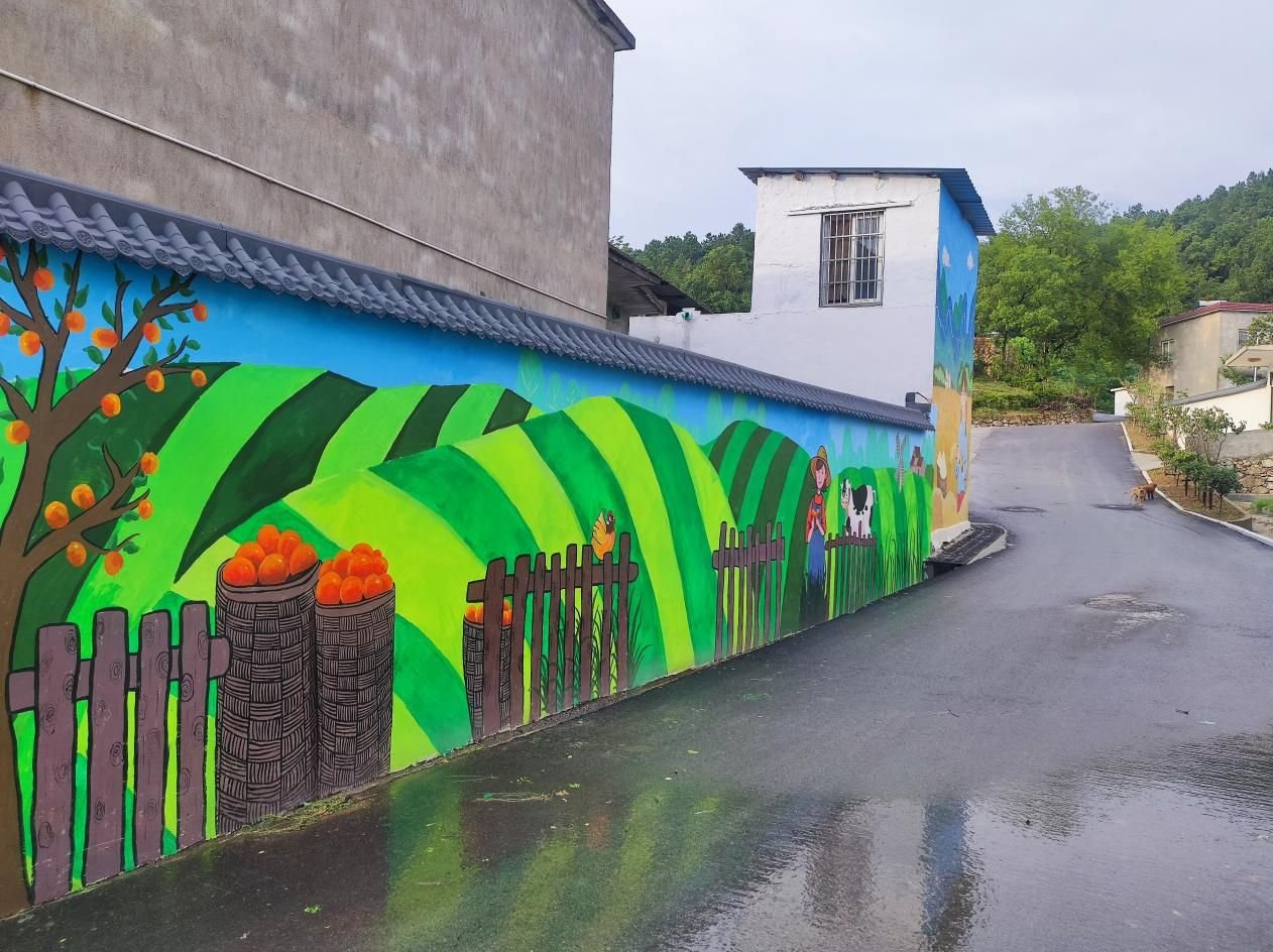總鋪社區(qū)嚴(yán)屋組的地標(biāo)性建筑是村史館和鄉(xiāng)村墻繪,游客可以一起從高處眺望這個(gè)美麗的村莊,從最高處向遠(yuǎn)眺望,原本破亂的彩鋼瓦頂變成了統(tǒng)一的江南琉璃瓦,階梯式地形分布讓村子看上去更加五彩繽紛、錯(cuò)落有致,各色墻體彩繪在陽光下格外耀眼。
