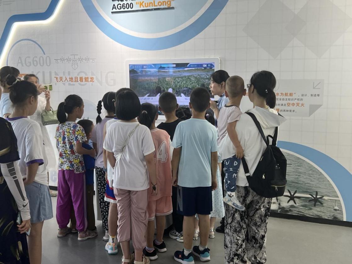 活動現場,小朋友們一進入“前沿科技”展廳就被國產大飛機C919所吸引,在講解員的引導下,大家了解到C919名字的由來,并且體驗了“蛟龍”探海VR體驗、長征系列運載火箭組裝、鯤龍AG600知識競答、虛擬試衣鏡等項目,他們親手操作著機器,感受著科技帶來的便利和舒適。在參觀了各種各樣的科技展覽后,孩子們驚嘆于科技的神奇和奧妙,興奮地與志愿者們交流著自己的想法和疑問,志愿者們也耐心地解答著孩子們的問題,引導他們思考和探索,讓他們在科技的海洋中暢游。