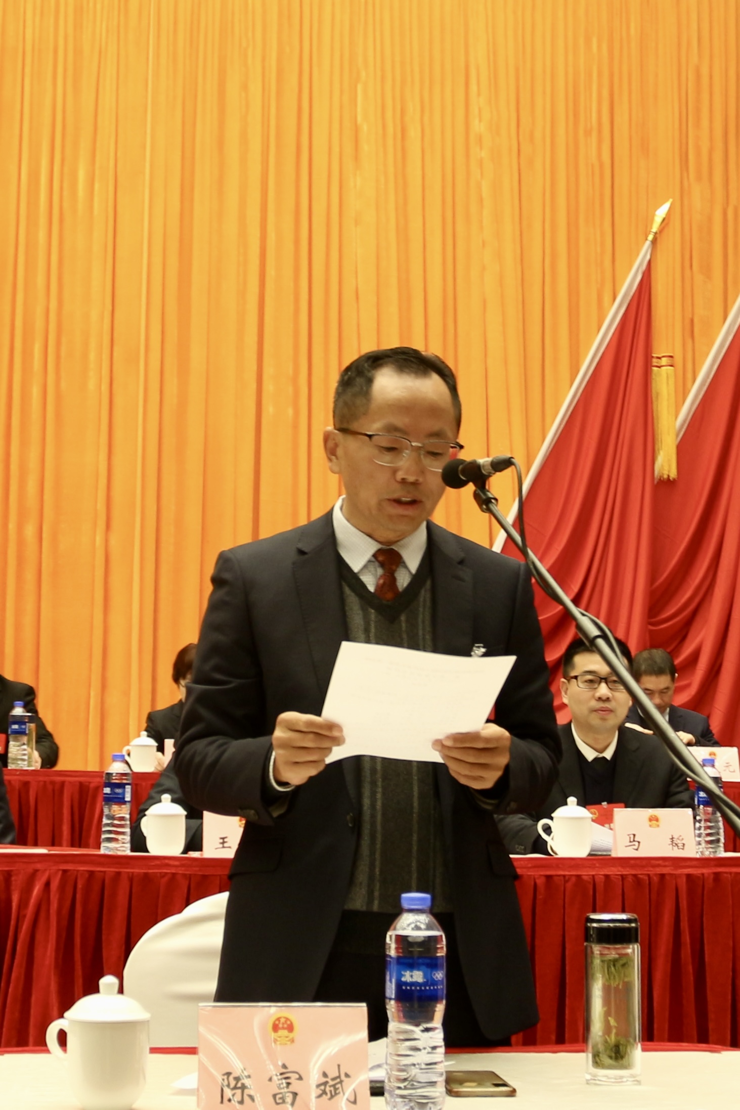 大會執行主席鄭志、吳曙、曹紅斌、陳富斌、王瓊、趙永杰、陳杰南、方林、何承海在主席臺前排就座。區人大常委會副主任陳富斌主持大會。