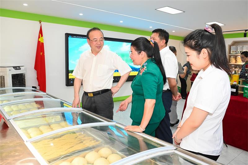 程嶺鄉楊辛村花亭小院依托直播帶貨基地,融入當地省級非遺和特色文化,正在打造現代田園風格的農文旅融合體;華亭鎮破涼社區山殼佬農產品貿易公司,通過“電商+基地+農戶”模式,年累計銷售農戶農產品約50萬公斤、帶動周邊200余戶村民創收增收。張祥安實地了解兩家產品生產、直播帶貨等情況,鼓勵她們打開思路、持續創新,聚合優勢資源、打造“大流量”,把更多的優質農特產品賣出去、賣出好價錢。