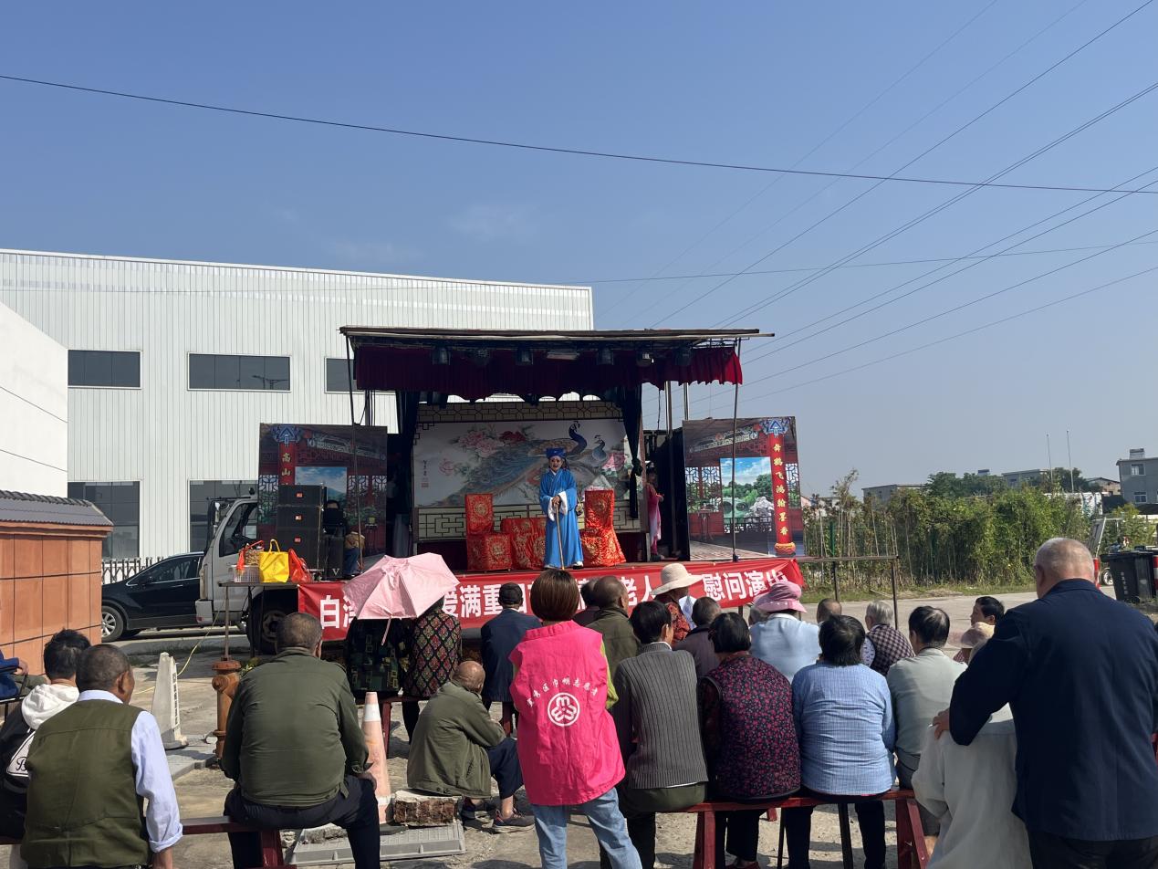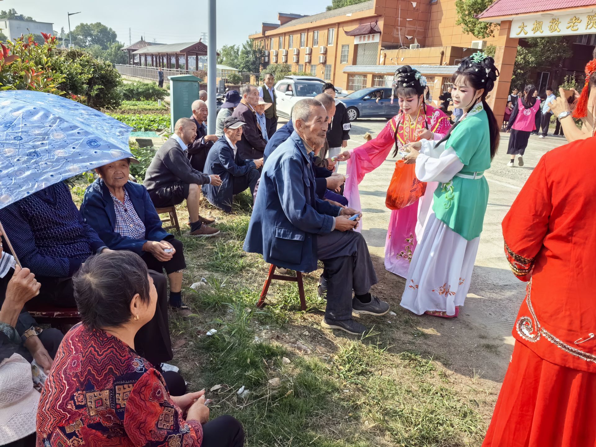 安徽網安慶消息     為豐富老人的精神文化生活,弘揚中華民族敬老愛老傳統美德,讓老年人度過一個喜慶、祥和、歡樂的重陽節,10月11日上午,由安慶市宜秀區白澤湖鄉新時代文明實踐所主辦,鄉綜合文化站、民生辦、民政辦、婦聯、殘聯、衛健辦、司法所、團委承辦的“愛滿重陽節,情暖老人心”慰問演出在大楓敬老院熱鬧上演,為來自敬老院及周邊老人送去了一份“戲劇大餐”。