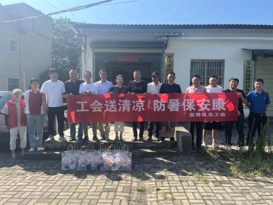 為切實把黨和政府及工會組織對新就業形態勞動者、農民工的關心關愛落到實處,近日,安慶市宜秀區總工會黨組書記、常務副主席楊滿意一行來到楊橋鎮官兵村安慶市興業運輸有限公司開展“工會送清涼 防暑保安康”走訪慰問活動,楊橋鎮總工會、官兵村相關負責人員陪同。