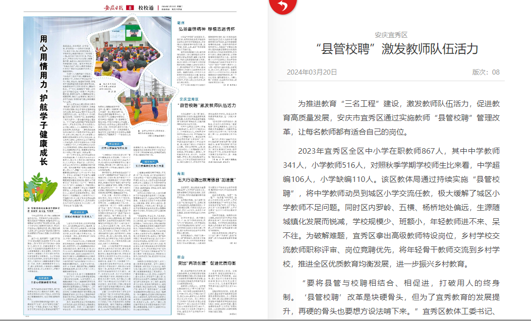 【安徽日報】安慶宜秀區(qū)“縣管校聘”激發(fā)教師隊伍活力