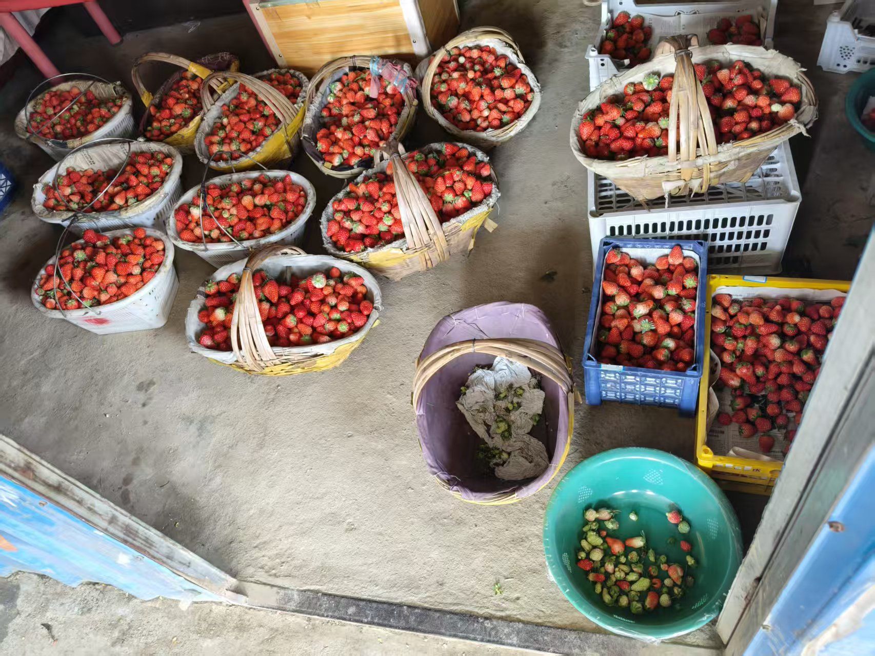 草莓種植戶唐后田說:“由于種出來的草莓甜度高、果型好、色澤正,當地的鮮果商超爭先采購。從采摘開始,我們天天都4點鐘起床,今天往外發貨就發了70多斤,最遠的貨是發到海口、廣州,許多人吃了一次我家的草莓就喜歡上我家的草莓,并且走親訪友整箱整箱地帶走。今年春節期間,全家人都忙不過來。”