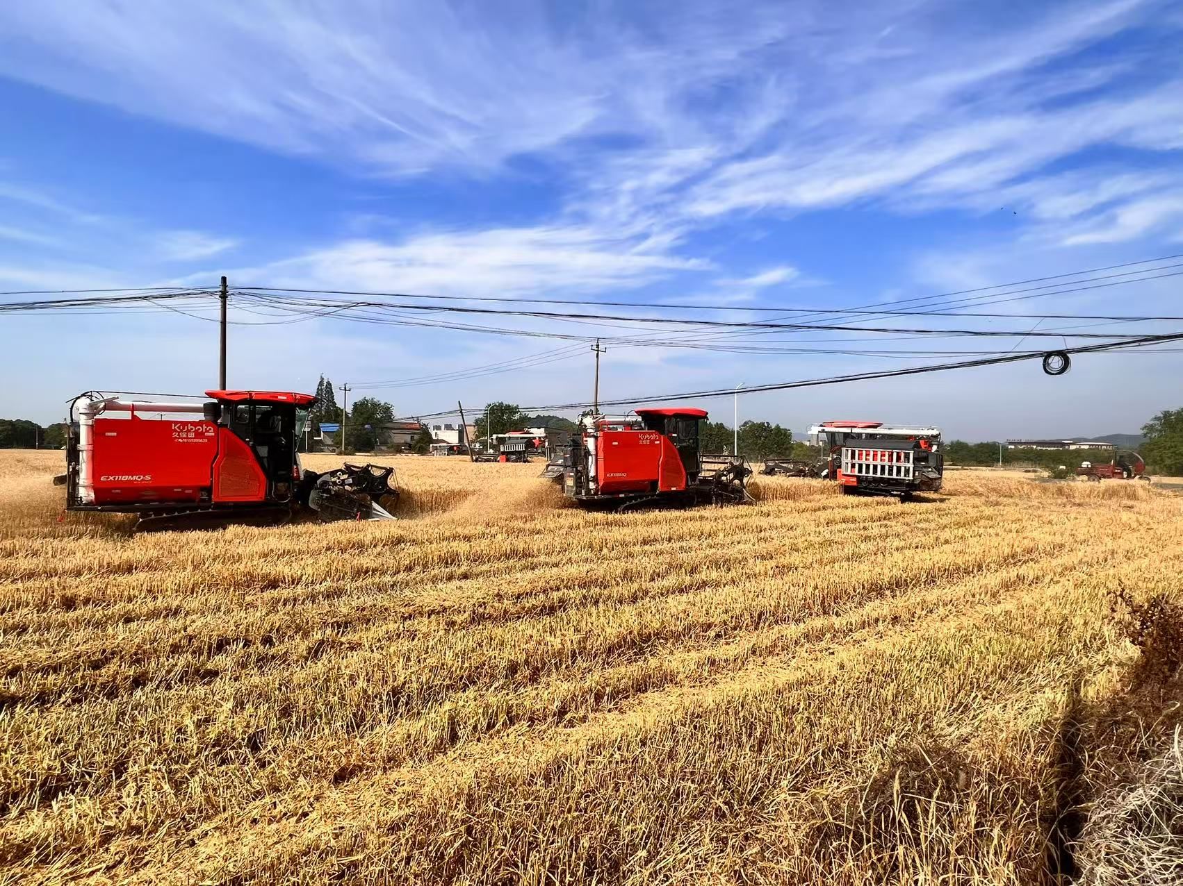 風吹麥浪豐收景,鄉村田野滿地黃。走進宜秀區大龍山鎮百華社區的鄉間田野里,放眼望去,金黃的麥穗在陽光下搖曳生輝,一臺臺大型收割機往返穿梭在金色的麥浪中,齒輪轉動之間,麥粒、秸稈有序分離,種植大戶搶抓晴好天氣有利時機,搶收、搶曬,處處呈現出一片火熱繁忙的好“豐”景。