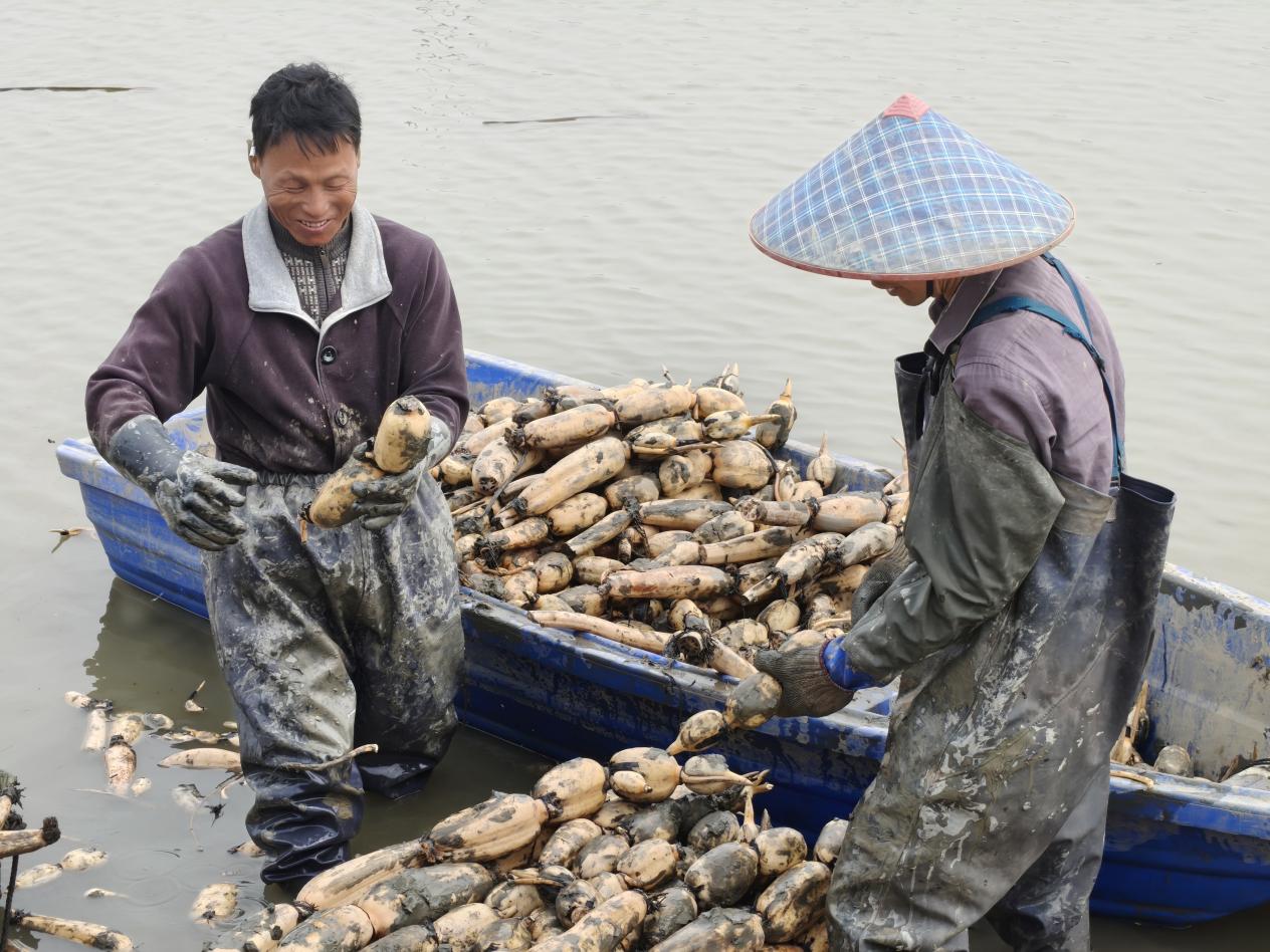 走進蓮藕種植基地,只見藕農們身穿防水服,劃著采藕小船,熟練地在藕田中穿梭。隨著藕農們的采摘,一根根粗壯飽滿的蓮藕浮出水面,藕農們迅速將其撿拾、清洗、裝筐,整個過程井然有序。姚學介紹,今年的蓮藕產量和質量都達到預期的目標,預計每畝產量可達3000斤左右,總收入十分可觀。